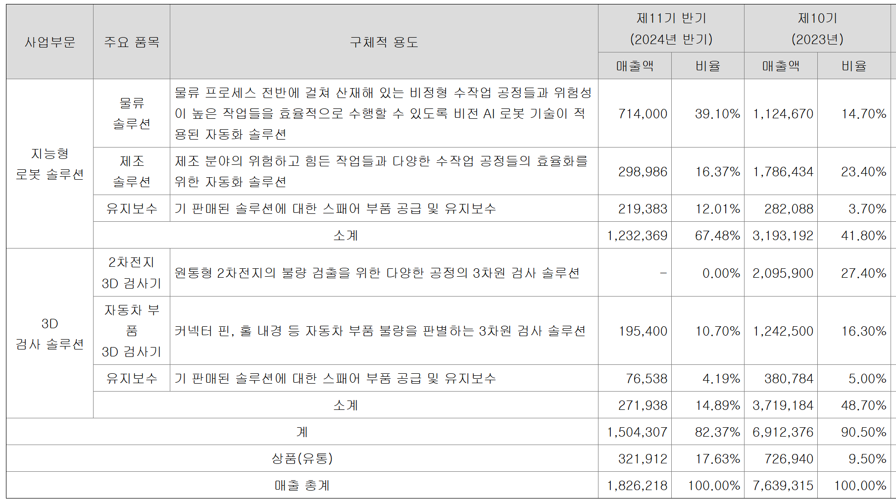 지능형 로봇 솔루션 사업의 경우, 적용 산업군에 따라 물류 분야와 제조 분야로도 나눌 수 있는데, 주요 고객은 물류 분야에서는 CJ대한통운, 쿠팡 등이 있고, 제조 분야에서는 현대/기아, 모비스 등 국내 대기업들이다. 다들 사업 규모가 큰 매출처들이기 때문에 동사의 솔루션이 여러 라인으로 수평전개 됨에 따라서 전체적인 사업의 수익성 개선을 노리고 있는 것으로 판단된다.