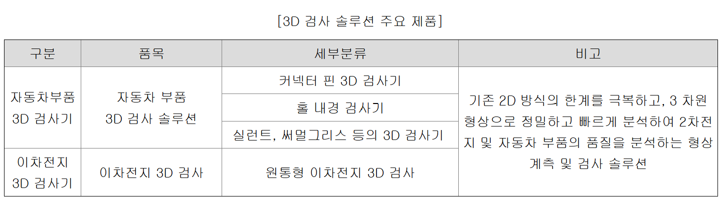 3D 검사 솔루션에서 제조 분야를 조금 더 자세히 들여다보면, 2차 전지 검사와 자동차 부품 검사로 나뉜다. 2차 전지 주요 고객사는 LG에너지솔루션인데, 정확하게 어떤 사업에서 동사의 검사기를 사용하고 있는지는 나와있지 않다.