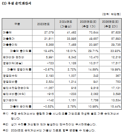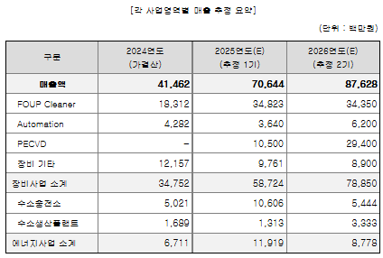 동사는 증권신고서에서 위와 같은 추정을 제시하면서, '24년 10월 최초 제출하고 철회한 증권신고서와 현재 신고서의 추정 손익에 차이가 나는 것은 PECVD 장비의 퀄테스트 검증 완료 시점이 연기되었다는 점을 언급한다. 즉, PECVD 검증이 아직 진행 중이라는 얘기인데, 동사는 '25년부터 PECVD 매출이 급성장하는 것으로 전망하였으며, 이 부분에서 높은 마진을 기대하고 있는 것 같다. 동사는 증권신고서에서 PECVD의 낙관적/중립적/보수적 실적 시나리오를 제시하였는데, 최종 손익 추정은 세 가지 가정 중 '중립'을 기준으로 제시하였으며, 중립 추정에서는 '25년에 PECVD 매출이 105억, '26년에 약 294억 발생함을 가정하였다.