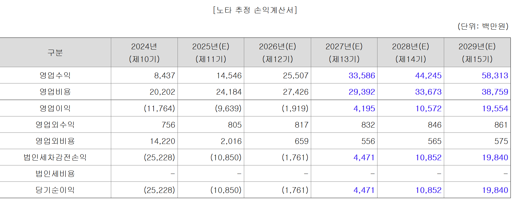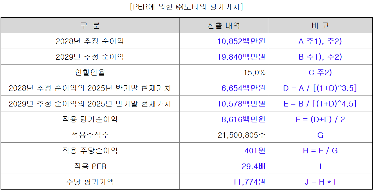 동사는 다음과 같은 Valuation을 제시했다. 전체적으로 보면, '27년 BEP를 달성하고, '28~'29년 추정순이익을 끌어오는 방식으로 Valuation을 했다. '28~'29년에 대한 지금 시점에서 확정되기는 어렵기 때문에, 회사의 중기적인 성장성을 보고 해당 Valuation이 합당한 지를 평가해야 할 것으로 보인다. 매출이 늘어나지만, 영업비용이 크게 늘어나지 않는 부분에 대해서는 용역매출이 아니라 SaaS형 매출로의 전환이 되어야 할 것으로 보인다. 현재도 BM 자체는 로열티 비즈니스가 포함된 것으로 보이지만, '24년까지는 용역매출로 표시되어 있다 보니 아직은 로열티 매출이 크지 않은 것으로 보이기 때문이다. (개인적인 생각)