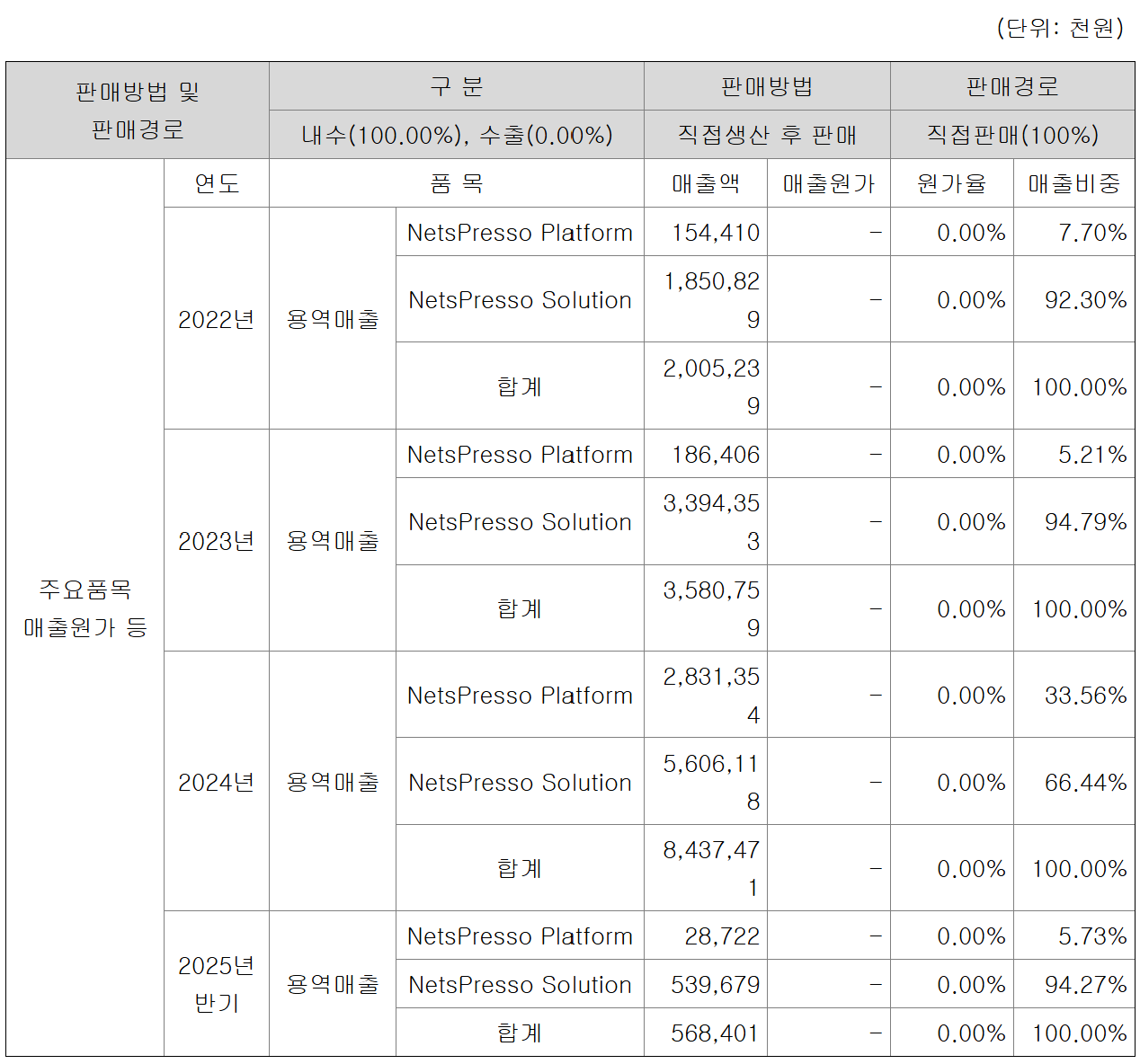 동사는 AI 경량화 기술을 기반으로 AI 모델 경량화 플랫폼 넷츠프레소 (NetsPresso)를 제공하고 있다. 사업은 크게 두 가지로 나뉘는데 1) NetsPresso Solution 사업은 엣지 AI 기반 영상 분석 기술을 기반으로 맞춤형 애플리케이션을 제공한다. 주로 교통안전, 운전자 모니터링, 안면 인식 등에 적용되는 서비스를 진행한 것으로 파악된다. 2) NetsPresso Platform 사업은 온디바이스 AI 모델 개발 과정을 자동화하는 플랫폼을 하드웨어 기업에 제공한다. 이를 통해, 고객사가 자체적으로 AI 모델을 최적화하고 개발할 수 있는 환경을 지원하며, 다양한 하드웨어 환경에 맞춤화된 AI 모델 개발 및 배포 자동화를 가능하게 한다.