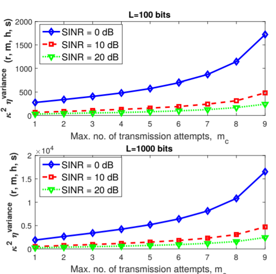 라는 식을 만족해야한다. 위 수식은 m번을 전송했을 때 PER이 URLLC의 Requirement보다 작아야한다는 점, 아래 수식은 s의 Transmission Time과 f의 feedback-delay를 m번 거쳐도 d의 Latency Requirement보다 작아야 한다는 내용이다.