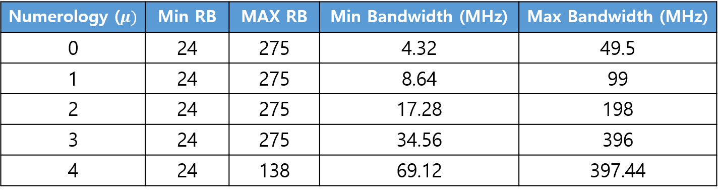 CBW의 Min & Max 값들 1 Resource grid - 1 Numerology - (DL / UL)