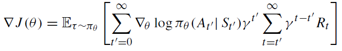 Objective Function은 말 그대로 '우리가 최적화 하기 원하는 함수'이기 때문에 강화학습의 목적인 ' Expected Reward의 최대화'를 기준으로 생각하면 된다. 따라서, Policy Gradient의 기본적인 Objective Function은 다음과 같다.