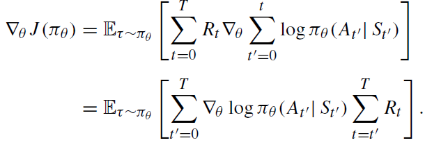 Policy Gradient의 Objective Function 이렇게 Expected Reward에 관한 Objective Function을 기준으로 잡았고, 기본 Reinforcement Learning 알고리즘이냐, Actor-Critic이냐 등의 알고리즘에 따라서, 다양한 Policy Gradient (PG) 값들이 있다. 주어진 Environment는 같더라도, 최적의 Policy를 찾아나가는 알고리즘은 다르기 때문에 이에 따라서 PG가 다르다.