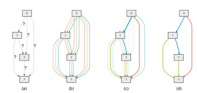 그 중에 AutoML에서 주요 논문 중 하나인 DARTS (Differentiable Architecture Search)가 등장한다. DARTS에서 가장 주목해야 할 점은 'Operation 선택에 Continuous한 개념을 도입'했다는 점이다. 기존의 방식들은 무슨 Layer, Layer 몇 개 같은 Discrete한 방식으로 Operation을 골랐다면, DARTS에서는 해당 operation을 고를 확률을 Continuous하게 최적화하는 방식을 도입했다. 이렇게 operation에 대한 확률이 나왔으면, 마지막으로는 최대의 확률을 갖는 operation으로 Layer를 구성하여 최종 Output으로 제시하게 된다.