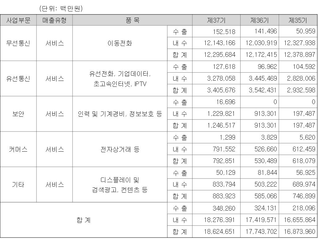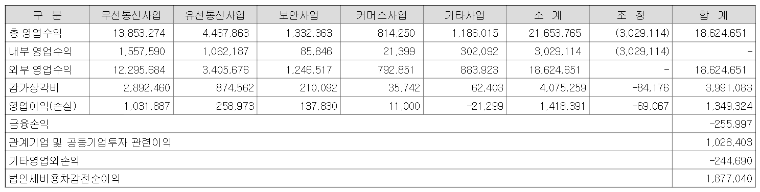 1) 무선 통신 사업은 4G/5G 등 이동통신 서비스를 통해 얻는 수익 사업을 말한다. 우리가 스마트폰을 사면서, 요금제를 가입하고 월 요금을 납부하는데, 이 때의 요금제 사업 또한 무선 통신 사업이다. 기업의 수익성 및 성장성을 가장 잘 나타내는 지표 중 하나인 '영업수익'의 측면에서 보면 작년 약 1조 8천억원의 영업수익 중 1조 3천억원, 약 72%가 무선통신 사업을 통해 벌어들인 수익이다.