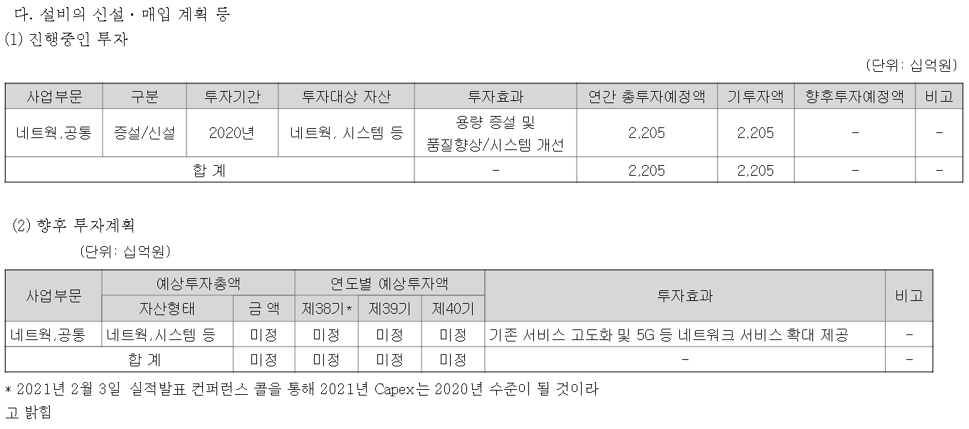 2020년 매출 현황 두 번째로 생각해볼 점은 기지국의 설치비용이다. 2020년 SKT의 기지국 투자비용은 약 2.2조원이었다. 5G 주파수를 할당받으면서, 할당 가격을 낮추는 조건으로, 약 12만국 정도의 기지국을 설치해야 하는 상황이다. 현재 설치된 기지국이 6~7만 국 정도인 상황에서 앞으로도 수 조원의 투자비용이 필요한 상황이다. 5G의 mmWave는 커버리지가 LTE보다 짧기 때문에, 많은 기지국이 필요한데, 현실적으로 모든 위치에서 mmWave를 사용하기에는 돈이 훨씬 많이 든다. 이를 보완하기 위한, 효율적인 기지국 설치가 필요하기 때문에 이런 연구도 진행중인 것으로 알고 있다.